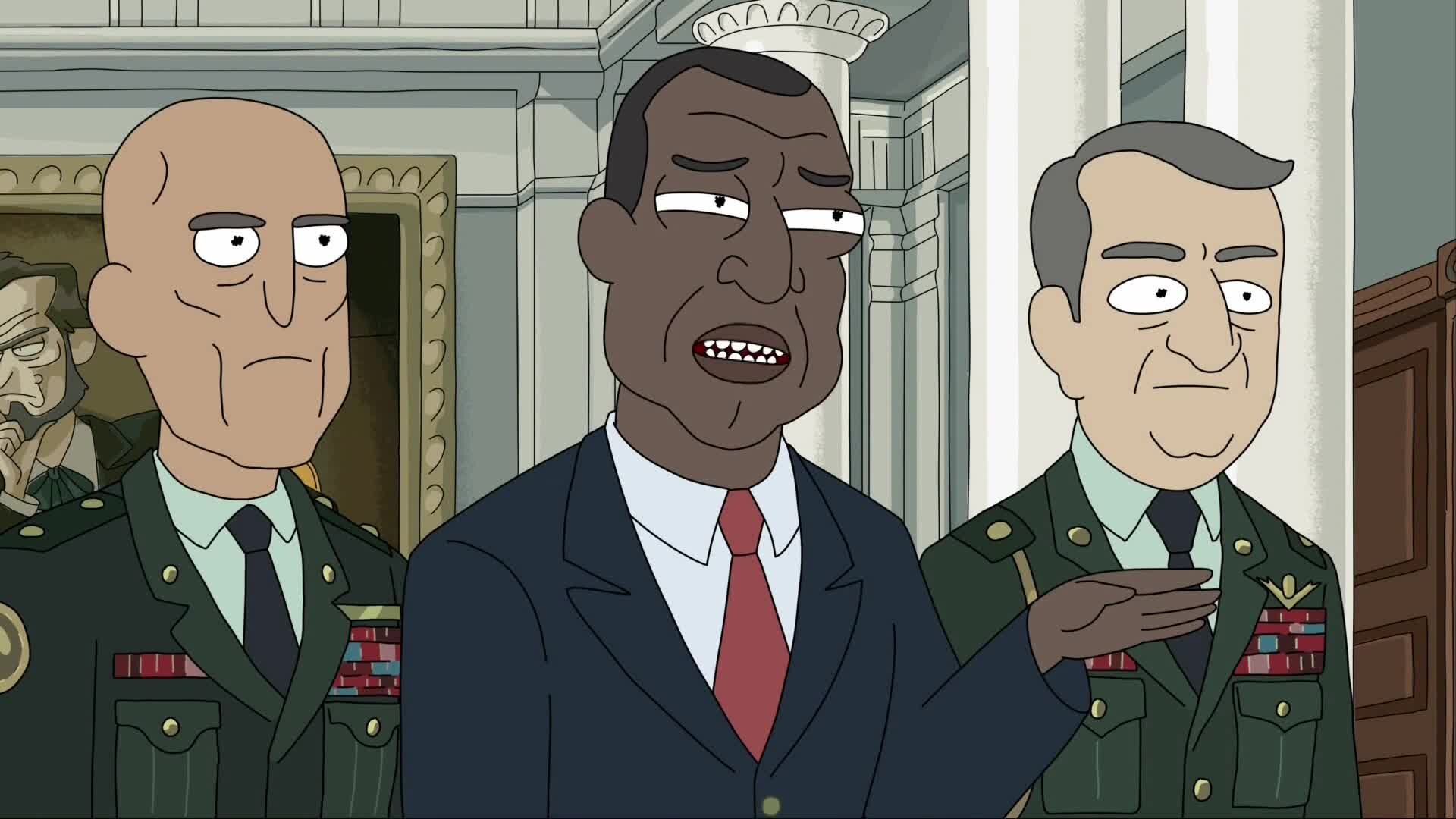 Президент США вызывает Рика и Морти «разобраться с чудовищем» в секретных туннелях Белого дома — пара выстрелов, и охота скукоживается до комичного недоразумения. Герои возвращаются домой и, бросив «государственную миссию», залипают в Minecraft; так начинается дипломатический ад на личных скоростях: телефонные наезды, слежка, взаимные ультиматумы. Рик демонстративно решает чужие кризисы — мирится с микроскопической цивилизацией в джунглях, штопает большой политический конфликт — лишь бы доказать, что над властью есть он.