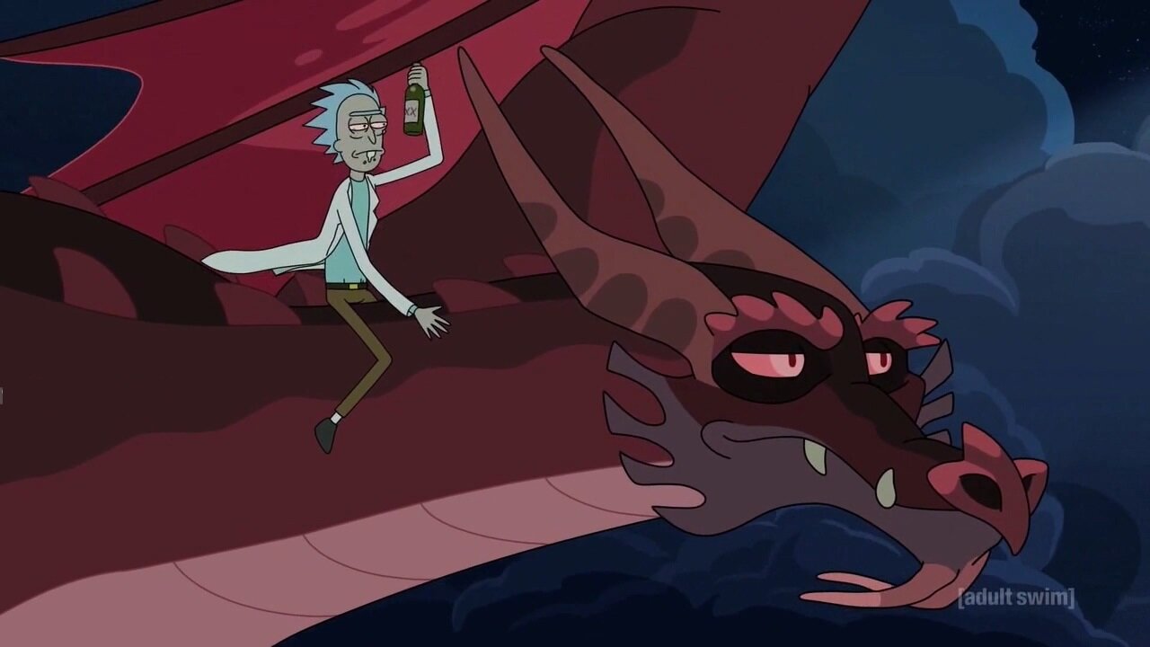 Морти выторговывает у Рика дракона — и вселенная тут же начинает поскрипывать, как плохо смазанная петля. Волшебник оформляет «душевную упряжь» с великаном Балтромо, но романтика оседлости быстро тухнет: дракон ленив, подросток обижен, а Рик, вмешавшись, случайно сам переплетается с чудищем — и тянет компанию в драконий мир разрывать клятвы и цепочки власти. Пламя, сокровищницы, «братство по внутреннему огню» — из этого квеста троица вынесет не победу, а неловкое знание о себе и чужой свободе. Тем временем Джерри заводит знакомство с говорящим котом, который напросился «в тёплые края»: пляж, стыд, лёгкая катастрофа и вопрос «почему он разговаривает?». Когда Рик с Джерри заглядывают кошке в голову, ответом становится тишина, близкая к ужасу; Рик сотрёт память, но не осадок.