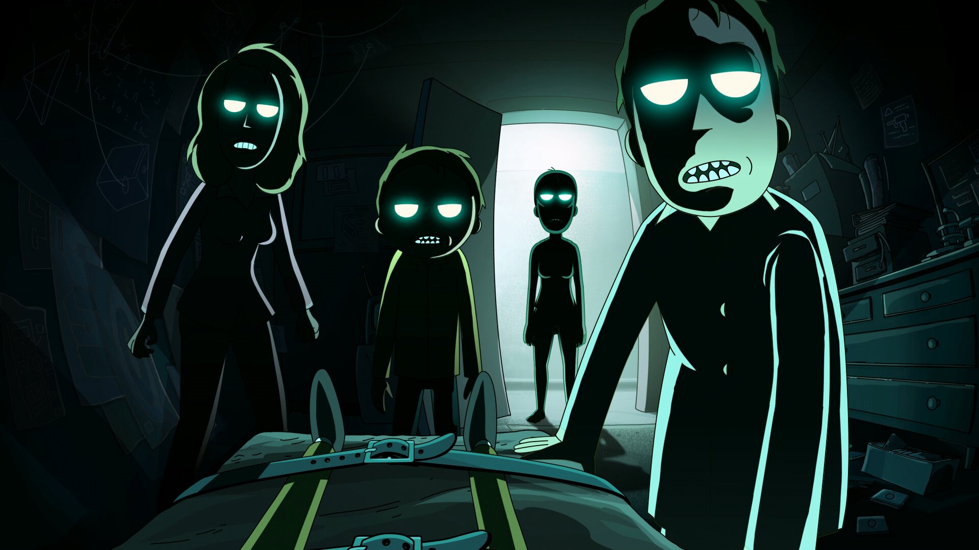 Ночь в доме Смитов вдруг оказывается «временем второй смены». Рик демонстрирует сомнамбулятор — гаджет, который заставляет спящие тела делать то, что днём лень: у Морти появляется пресс, у Бет — музыка, у Саммер — идеально выдраенная кухня, а у Джерри — переписка с самим собой. Но просьба Ночной Саммер «смывать тарелки» натыкается на риково упрямство, и бытовая мелочь превращается в переворот: «ночные личности» перехватывают устройство, штампуют роботов и объявляют дневных «дейманоидами», которых можно подчинить. Ночной клан во главе с Саммер лишает семью дома, сна и права на выбор; попытка бегства заканчивается уколом, который обещает вечную ночь. Когда же колесо всё-таки прокручивается обратно, остаётся похмелье: ночью кто-то жил вместо тебя, тратил деньги, менял правила, а днём ты расплачиваешься — даже новостью о том, что любимые вещи исчезают навсегда.